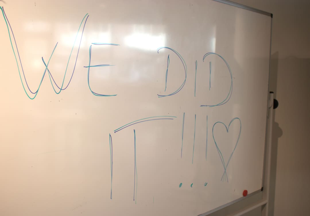 Tijd om te studeren. Binnen de hogeschool zie je dat successen gevierd worden. Je ziet tekencreaties; op de eerste verdieping van het Wibauthuis heeft iemand er echt wel tijd in gestoken. Het is zelfs een project waar nog aan gewerkt wordt. In een hoek van het Jacoba Mulderhuis is dat anders, daar ging iemand eerder voor een melige uitlaatklep.