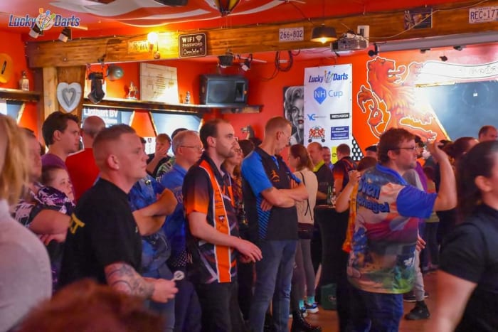 Beeld: Arcangelo Tardio | Deelnemers tijdens een toernooi van Lucky Darts