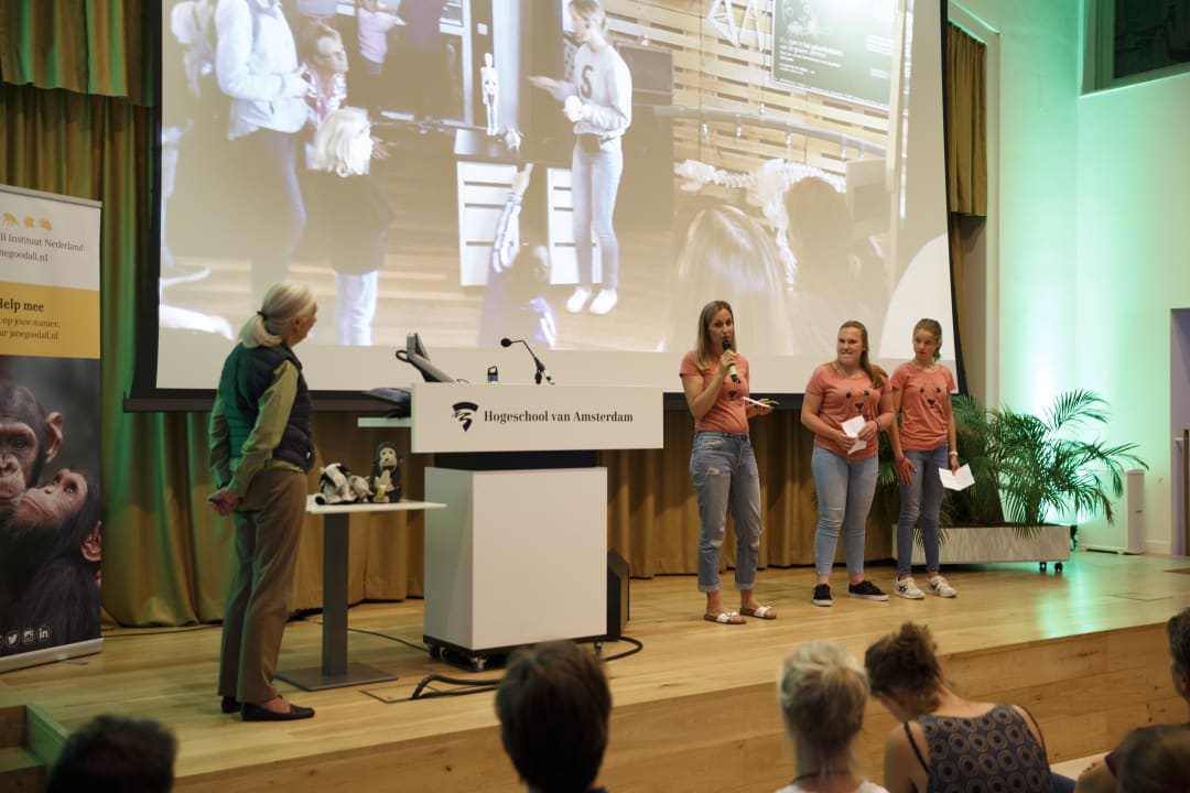 Apendeskundige en wereldverbeteraar Jane Goodall gaf donderdag een lezing op de HvA. En dat is best bijzonder. Zo bijzonder dat er livestreams waren op zes andere hoger onderwijsinstellingen. Ze had een belangrijke boodschap voor jonge mensen: ‘Jullie kunnen van de wereld een betere plek maken.’
