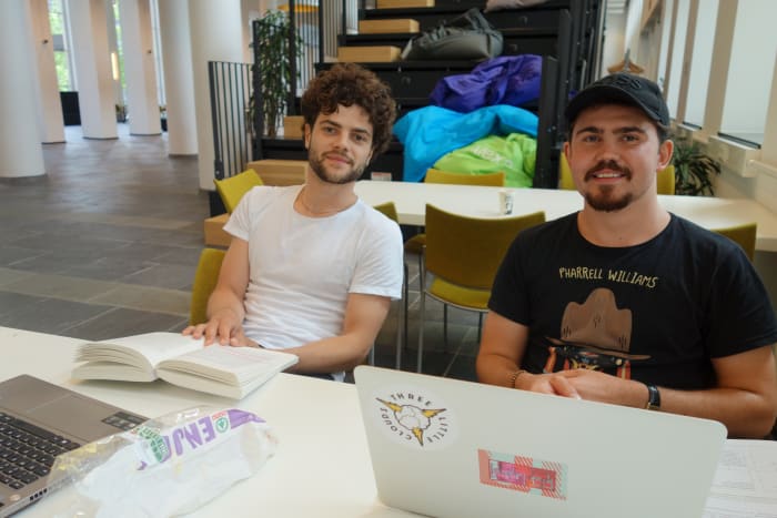 ‘Vaak als we in het Theo Thijssenhuis zitten te studeren, beginnen mensen spontaan tegen ons te praten. Meestal zitten we in het Amfi, maar we vinden dit gebouw lekker comfortabel. Ik vind het superleuk dat mensen hier zomaar een praatje komen maken. Dan vragen ze bijvoorbeeld welk programma we hebben gebruikt en dat het er zo mooi uit ziet. Laatst zei iemand ook: “Wat zie je er leuk uit!”’