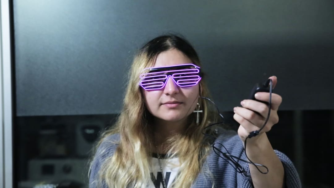 ‘Als ik op festivals ben worden mijn brillen altijd wel even afgepakt en opgezet door iemand anders. Vooral de bril met glazen die op discoballen lijken vindt iedereen fantastisch. Ik heb ook een bril met een accu, die geeft licht. En een bril die muziek af kan spelen.’