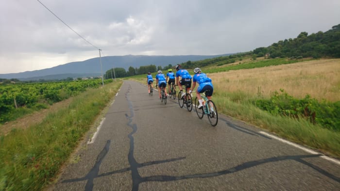 ‘Na de overnachting in het hotel komen we zondag dan eindelijk aan bij het huis, met uitzicht op de Mont Ventoux. De beruchte berg staat nog niet gelijk op het programma. De eerste dagen fietsen we verschillende rondjes in de omgeving van de berg, tussen de lavendelvelden door. Het is hier echt prachtig. Onderweg eten we lekker op terrasjes, en gunnen we de benen nog wat rust voor het echte klimwerk.’