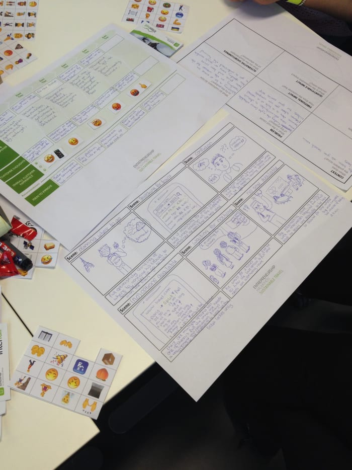 Elk groepje leeft zich in een andere treinreiziger in: de oudere dame, het hipstergezin, de backpacker of de zakenreiziger. Gewapend met emoji-stickers en storyboards gaan de studenten aan de slag.